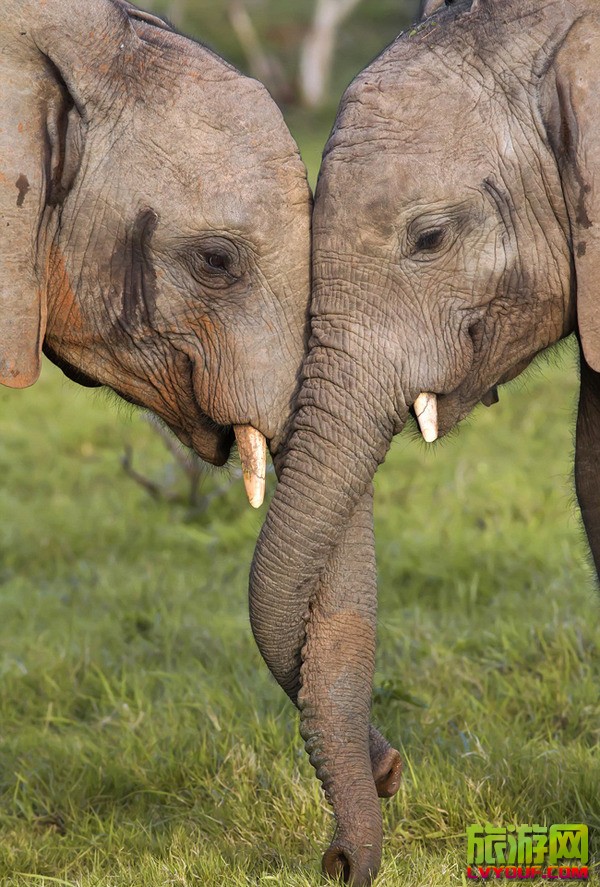 從某個角度看起來,兩頭非洲象似乎在“親吻”對方   據《每日郵報》報道,37歲攝影師雅克·馬蒂桑日前在南非卡里埃加野生動物保護區(Kariega Game Reserve)內拍攝到溫馨一幕:兩頭非洲大象鼻勾 ...