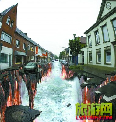 街道被畫成了冰與火的“深淵” 據英國媒體報道,一組名為《冰河世紀》的3D街道藝術作品由德國街頭藝術家在愛爾蘭敦拉奧海里創作成功。畫面逼真,猶如身臨其境——冰河在行人的腳下融化,頓成萬丈深淵 ...