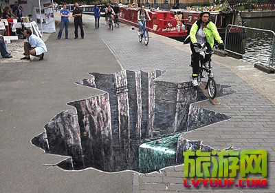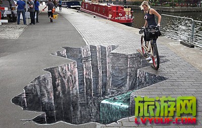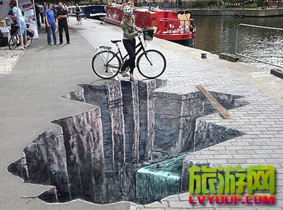 一幅三維的峽谷涂鴉作品在倫敦攝政運河邊的街道上亮相 市民騎車從“大峽谷”上的獨木橋上跨過 “大峽谷”實在太逼真,只敢微微探頭觀望  據英國媒體報道,一幅三維的峽谷涂鴉作品在倫敦攝政運河邊的街 ...
