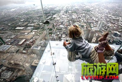 日前,美國芝加哥的西爾斯大廈在第103層瞭望臺增設的玻璃陽臺對媒體開放。這些玻璃陽臺建在大廈西側,從瞭望臺向外延伸約1.2米。陽臺的玻璃地板厚達12.7厘米,可承重約5噸。