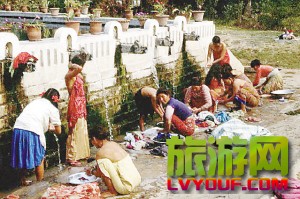 含有硫磺的溫泉水有益健康   尼泊爾人似乎和水有著天然的親近感,然而據(jù)了解,在加德滿都卻沒有一家室內(nèi)的公共浴池,原因是收費太高,尼泊爾百姓承受不起,他們大多選擇在街邊的水池或者噴泉邊洗澡。 ...