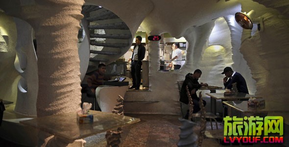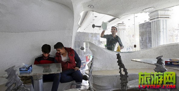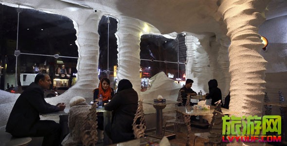 伊朗設(shè)拉子的Namak餐廳。這家洞穴一般的快餐店因墻壁、柱子及餐桌都是用鹽做成的,吸引了大批顧客前來。