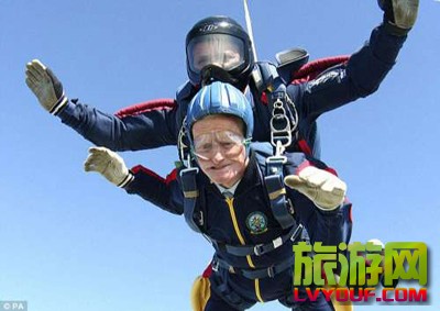 旅游官 英國98歲老人高空跳傘籌善款 attach_img