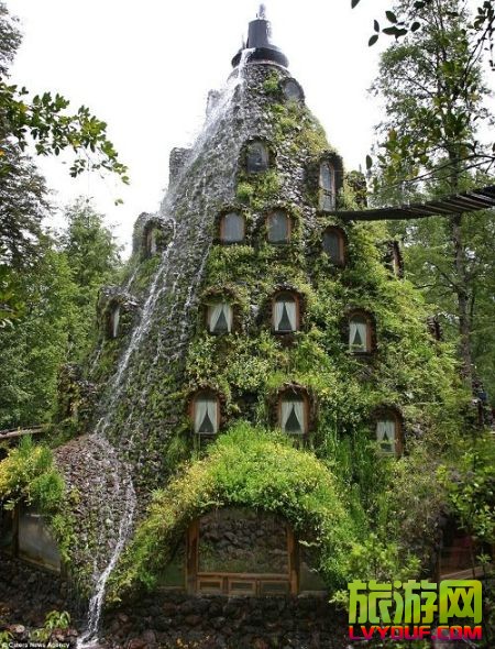 在智利的原始森林深處有一所奇特的建筑,它形似火山,外墻被苔蘚和雜草覆蓋,游客要想進去,只能通過半空中的一個吊橋。這個猶如科幻片中的建筑實際上是一家旅館。   這家造型奇特的旅館位于智利自然保護區 ...